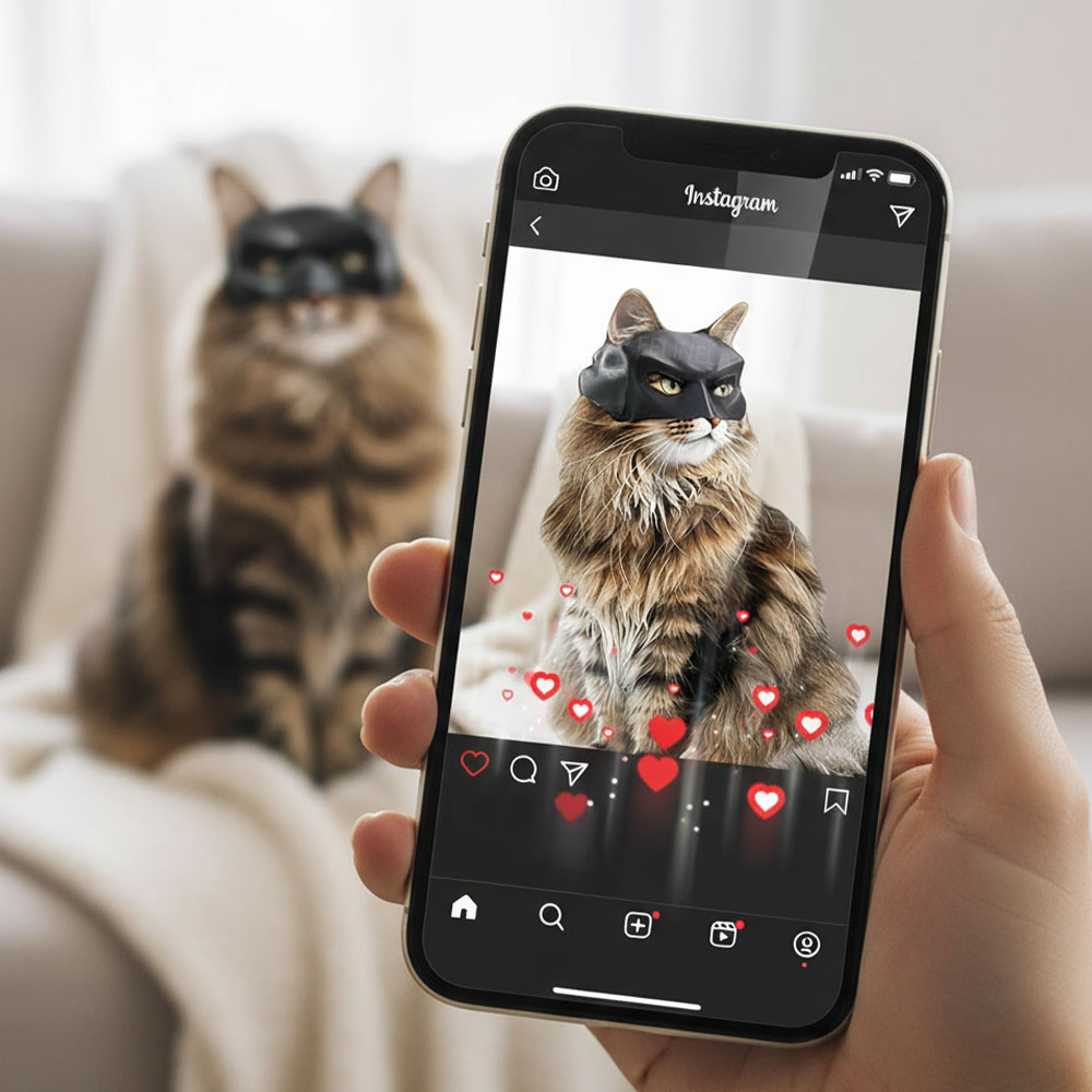Orice iubitoare de pisici știe că cele mai bune poze și filmulețe sunt cele naturale, dar cu impact instant. Cu Masca Pisi-Erou, pisica ta devine în câteva clipe starul reels-urilor și al TikTok-urilor. Comentariile de genul „De unde ai cumpărat asta?!” vor apărea imediat. Este cel mai simplu mod ca blănosul tău să strălucească pe social media și să adune inimioare mai repede decât le poți număra.