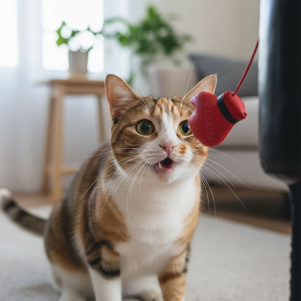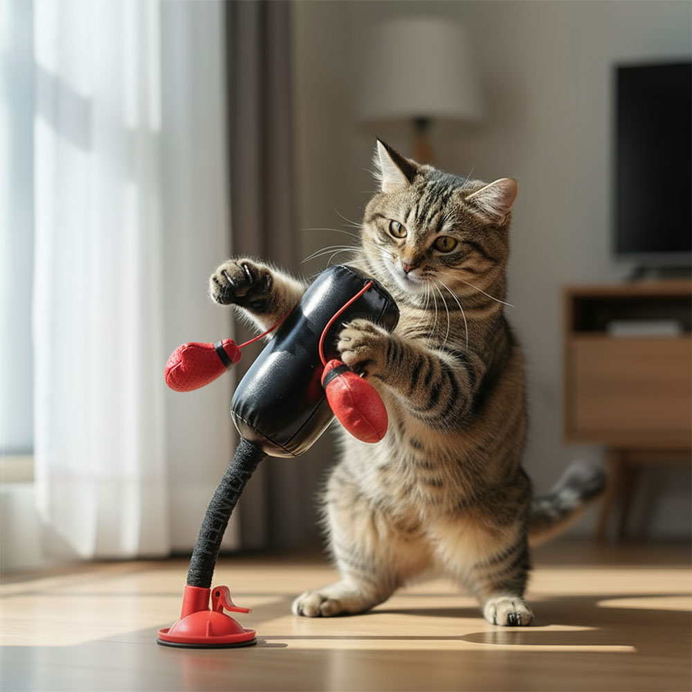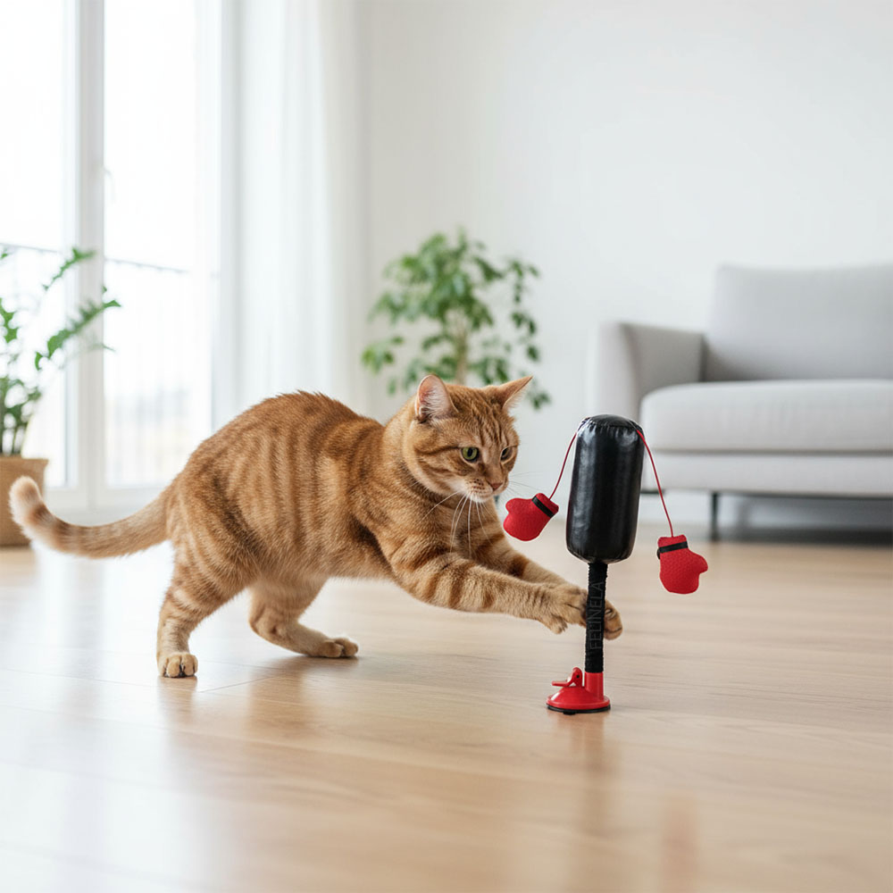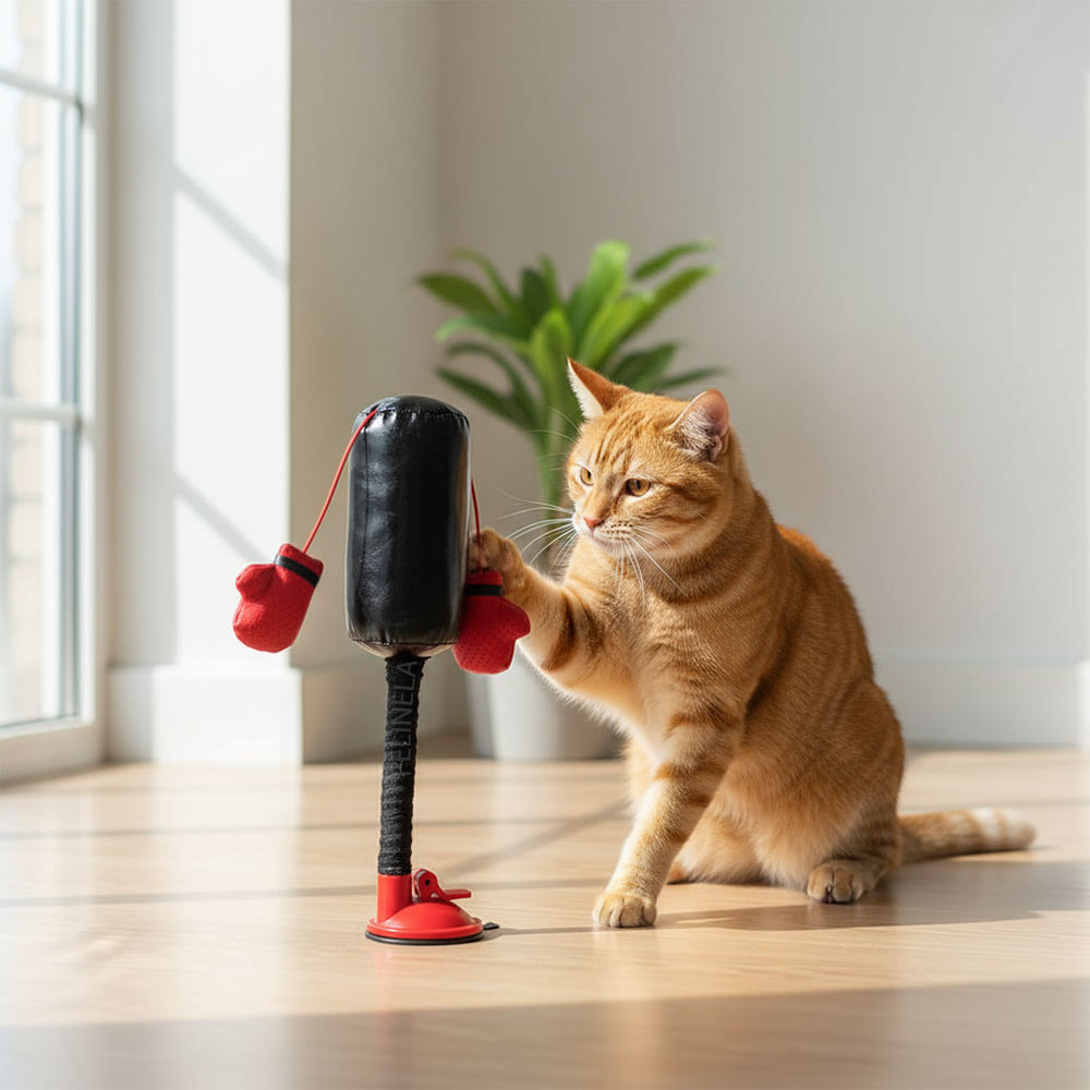 Aici ajută Mini Sac de Box pentru Pisici – o jucărie interactivă care poate consuma rapid energia unei pisici active. Mecanismul elastic face ca sacul să se încline și să revină după fiecare lovitură, ceea ce provoacă reacții în lanț: lovește, revine, lovește din nou. Pisica se concentrează pe obiect, nu pe mobilă sau perdele. Este o formă de activitate zilnică ce solicită fizic și ajută la reglarea nivelului de energie.